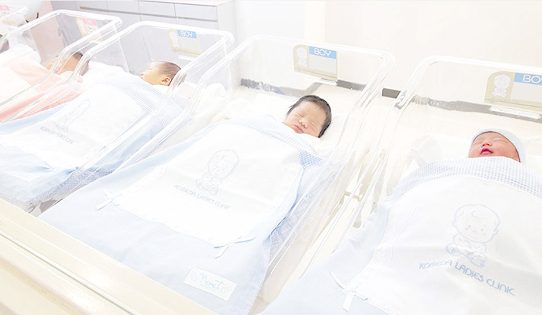 「入院中、お子さまを保育する方がいない」というママの悩みが少しでも解消できるよう、分娩後もお子さまも一緒に入院していただけます。詳細をお聞きになりたい方は、妊婦健診時にご相談ください。